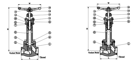 低溫焊接截止閥主要連接尺寸及重量